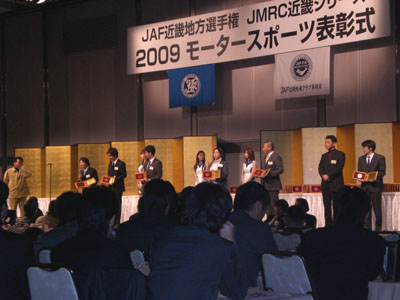 さて,もうみんカラの方にアップした話ですが,先週の日曜日,ホテル阪急エキスポパークで行われたJAF/JMRCの近畿2009年シリーズ戦の表彰式に行ってまいりました。ジムカーナ,ダートラ,ラリー,レース,カートなど各カテゴリーの公式シリーズ戦で近畿地区最速を争い優秀な成績を残した選手達の集いです。